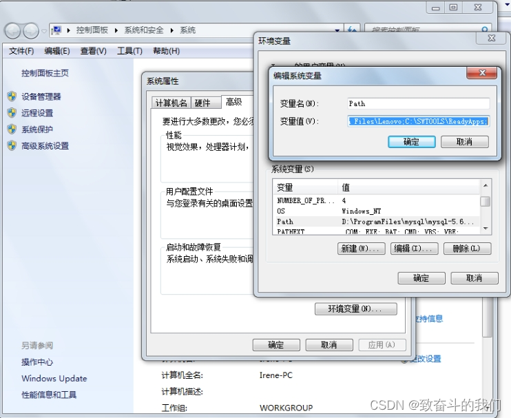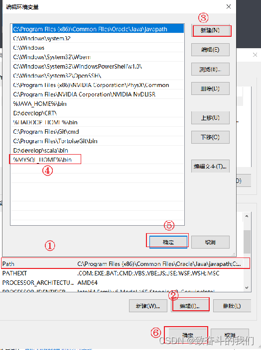 找到path环境变量,将其中关于mysql的环境变量删除,切记不要全部删除。
