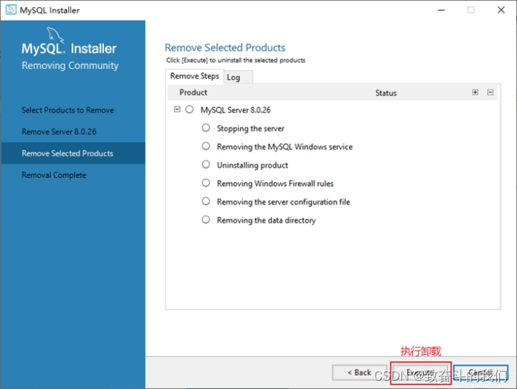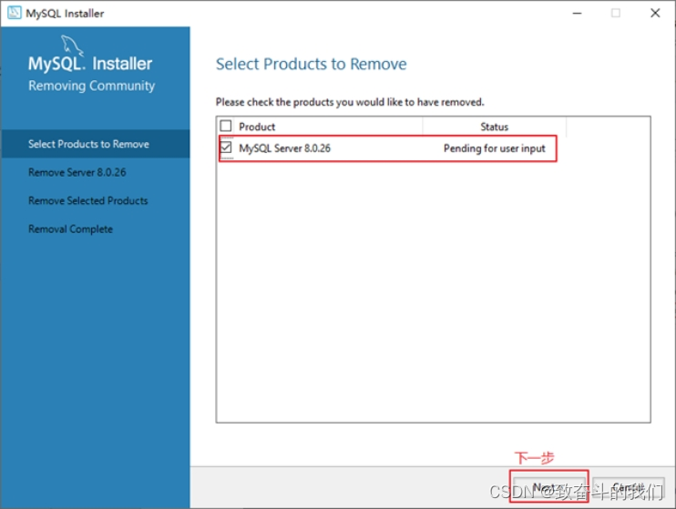 你也可以通过安装向导程序进行MySQL8.0服务器程序的卸载。