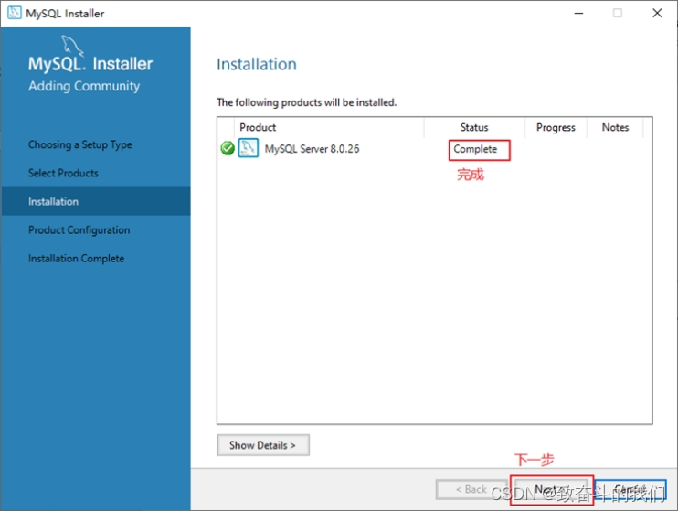 - mysql-installer-web-community-8.0.26.0.msi 下载程序大小:2.4M;安装时需要联网安装组件。