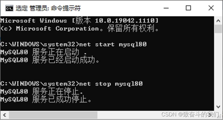 # 停止 MySQL 服务命令:
