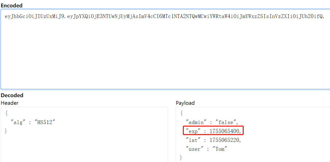 修改username参数和exp参数后重新生成一个JWT token
