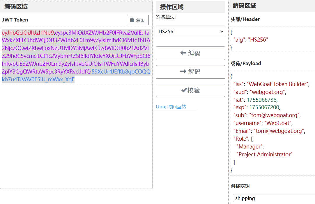 题目给出了JWT token,需要我们将其的用户名修改为WebGoat