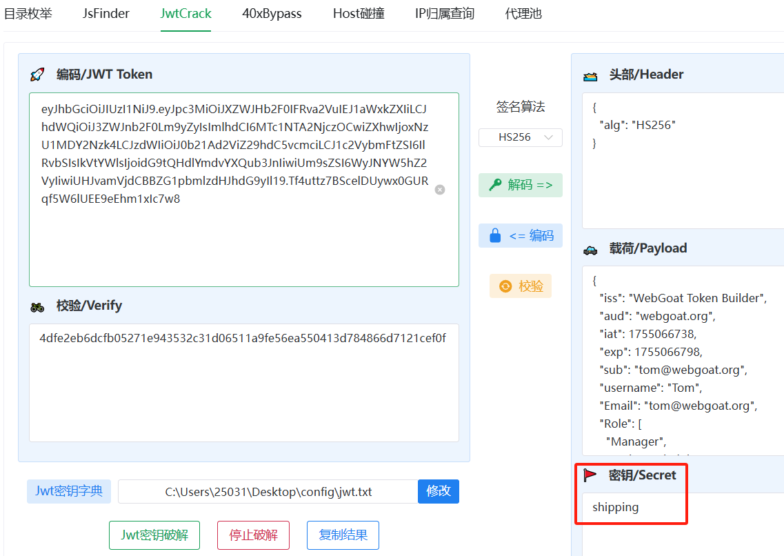 首先我们需要得到密钥,因此使用TscanPlus进行爆破得到密钥为shipping