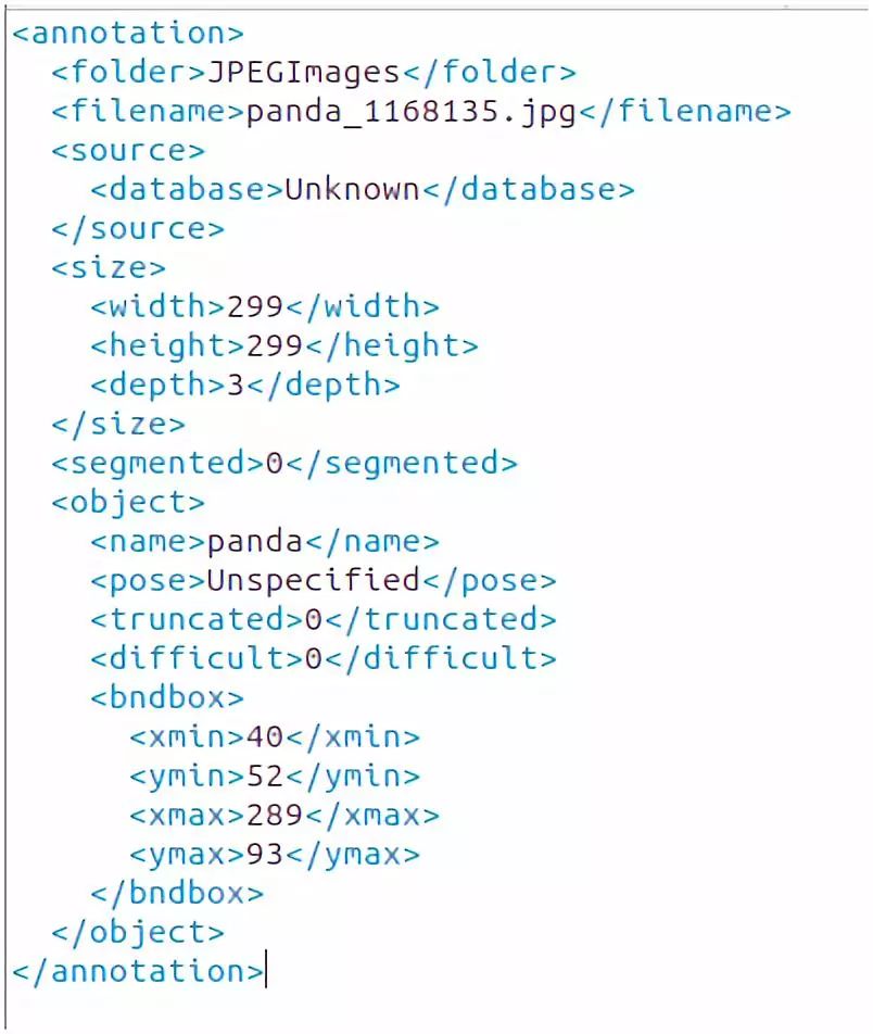目前流行的数据标注文件格式主要有VOC_2007、VOC_2012,该文本格式来源于Pascal VOC标准数据集,这是衡量图像分类识别能力的重要基准之一。本文采用VOC_2007数据格式文件,以xml格式存储,如下: