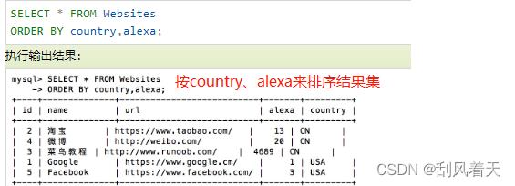 (1)distinct:去除列中重复值 例:SELECT DISTINCT country FROM Websites;