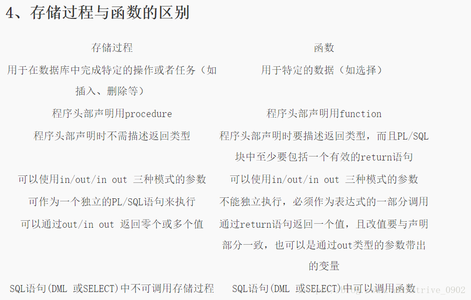 4、存储过程与函数的区别