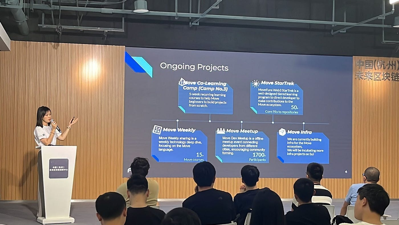 北京时间6月17日下午2点到6点,由MoveFuns DAO 、MoveBit、ComingChat、杭州时戳微蓝信息咨询有限公司和WEB3CN联合举办的Move开发者线下交流会圆满结束。本次交流会吸引了110余名Move开发者报名,其中超过60位参会者成功来到现场参与了线下交流。