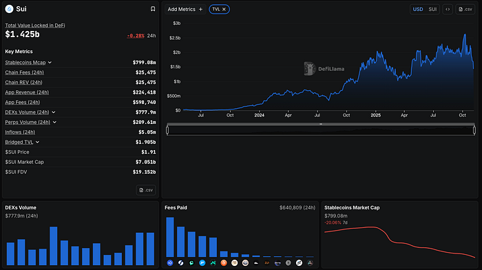 数据统计时间:2025–11–05 10:00(UTC+8)https://defillama.com/chain/Sui