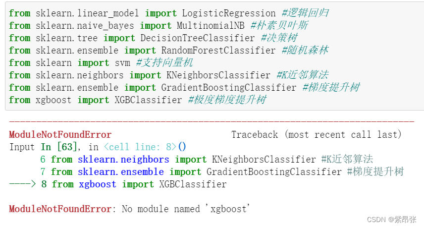 当要用的包没有安装怎么办?比如这里要用到XGBoost的模型,但是报错了。