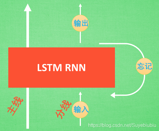 他多了一个 控制全局的记忆, 我们用粗线代替. 为了方便理解, 我们把粗线想象成电影或游戏当中的 主线剧情. 而原本的 RNN 体系就是 分线剧情. 三个控制器都是在原始的 RNN 体系上, 我们先看 输入方面 , 如果此时的分线剧情对于剧终结果十分重要, 输入控制就会将这个分线剧情按重要程度 写入主线剧情 进行分析. 再看 忘记方面, 如果此时的分线剧情更改了我们对之前剧情的想法, 那么忘记控制就会将之前的某些主线剧情忘记, 按比例替换成现在的新剧情. 所以 主线剧情的更新就取决于输入 和忘记 控制. 最后的输出方面, 输出控制会基于目前的主线剧情和分线剧情判断要输出的到底是什么.基于这些控制机制, LSTM 就像延缓记忆衰退的良药, 可以带来更好的结果