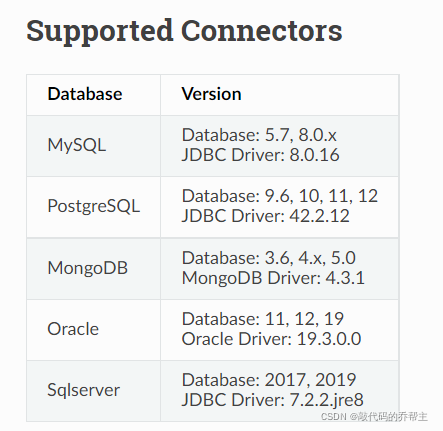 5.支持的版本和连接器