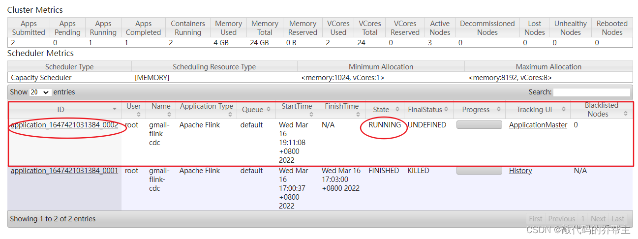 (1)打开yarn,查看任务:http://192.168.0.112:8088/cluster/apps,并且通过id点击进去