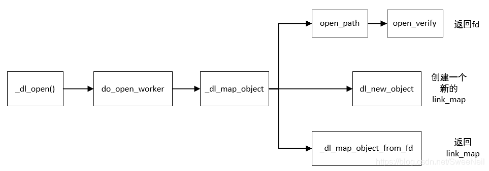 暂且将dlopen.c文件中的调用关系称为第一层调用吧,其具体图示如下所示: