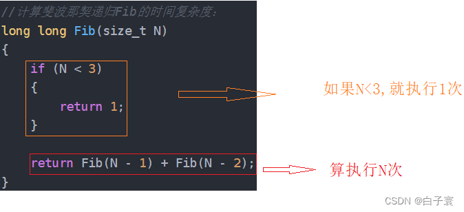 1.递归树:每次调用 Fib(N) 都会生成两个新的递归调用 Fib(N - 1) 和 Fib(N - 2)。这形成了一2.个递归树,其中每个节点都会生成两个子节点,直到达到递归基(N < 3)。