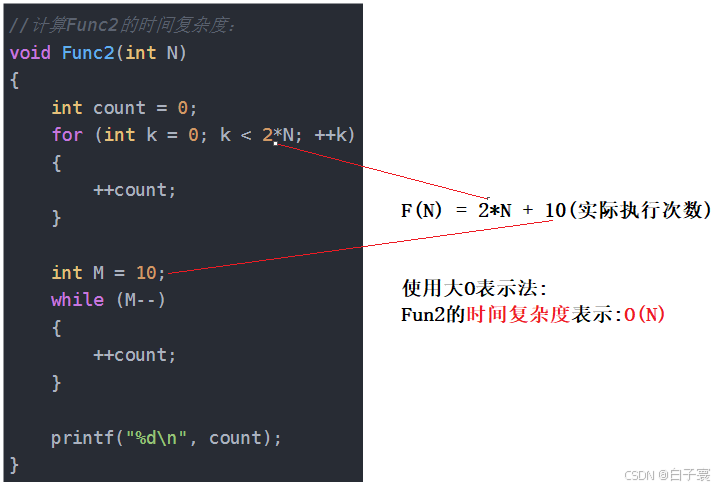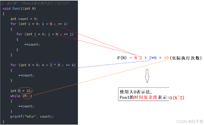 简化表达式:在大O表示法中,我们通常只保留最高次项,并去掉常数因子和低阶项,因为它们对算法的渐进行为影响较小。