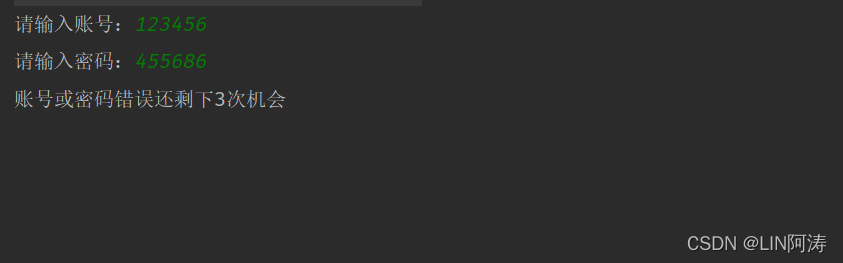 System.out.println("密码错误还剩下"+cont+"次机会");