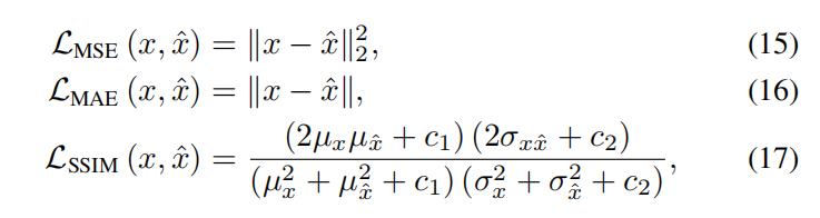 大多数研究需要使用信号可靠性驱动矩阵作为损失函数,如均方误差(MSE) (L2)、均方误差(MAE) (L1)和SSIM[41]。它们的定义如下: