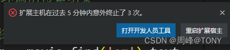 关于Visual Studio Code提示:扩展主机在过去5分钟内意外终止了3次。的解决办法。