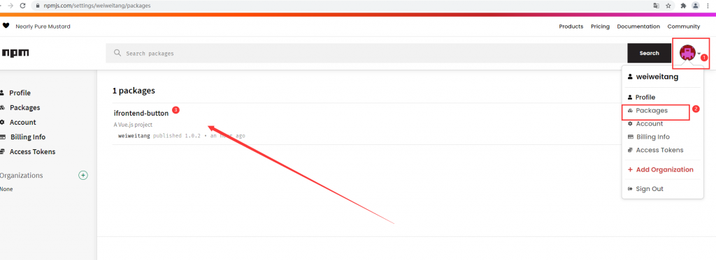 这个 npm login 可能有个坑大家需要注意一下,其实严格来说不是坑,只是国内的开发者由于安装模块网速问题。一般都设置了 npm 淘宝镜像。执行上面的登录命令会报错 “e409 Conflict”,出现这个报错的小伙伴先不要着急,其实只要把镜像设置成 npm 默认的就行了,找到 .npmrc registry=http://registry.npmjs.org/