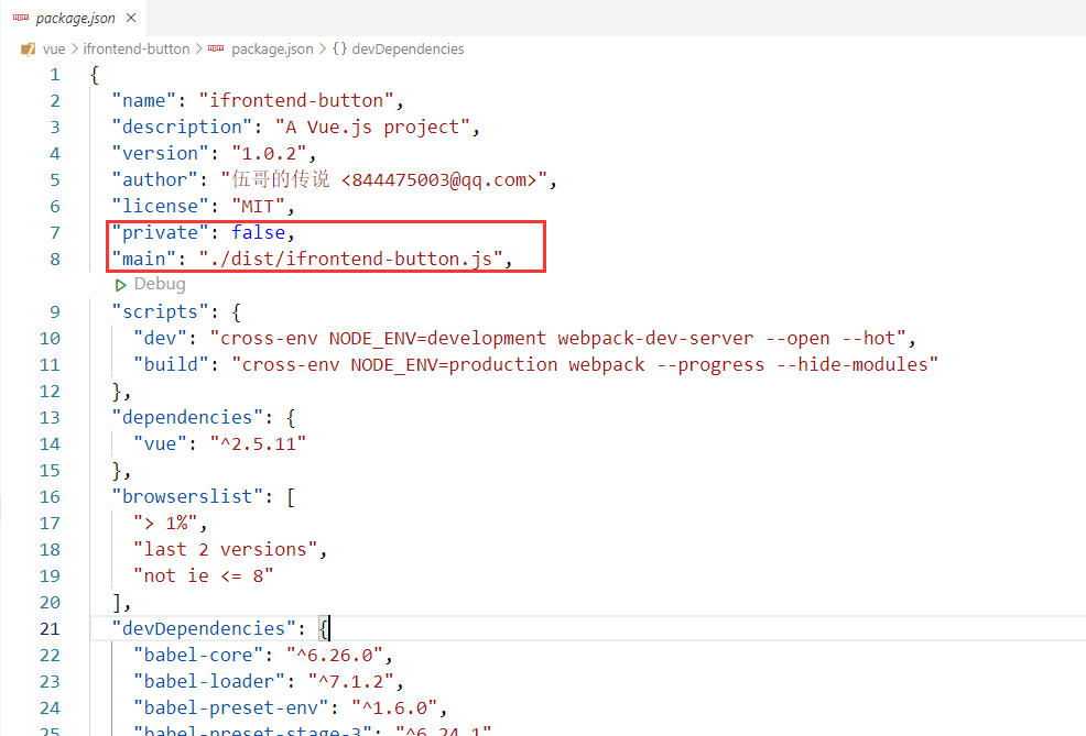 只有 private: false,你这个组件库才能发布到 npm 。 main字段是 require 方法可以通过这个配置找到入口文件,这是模块加载规范,。