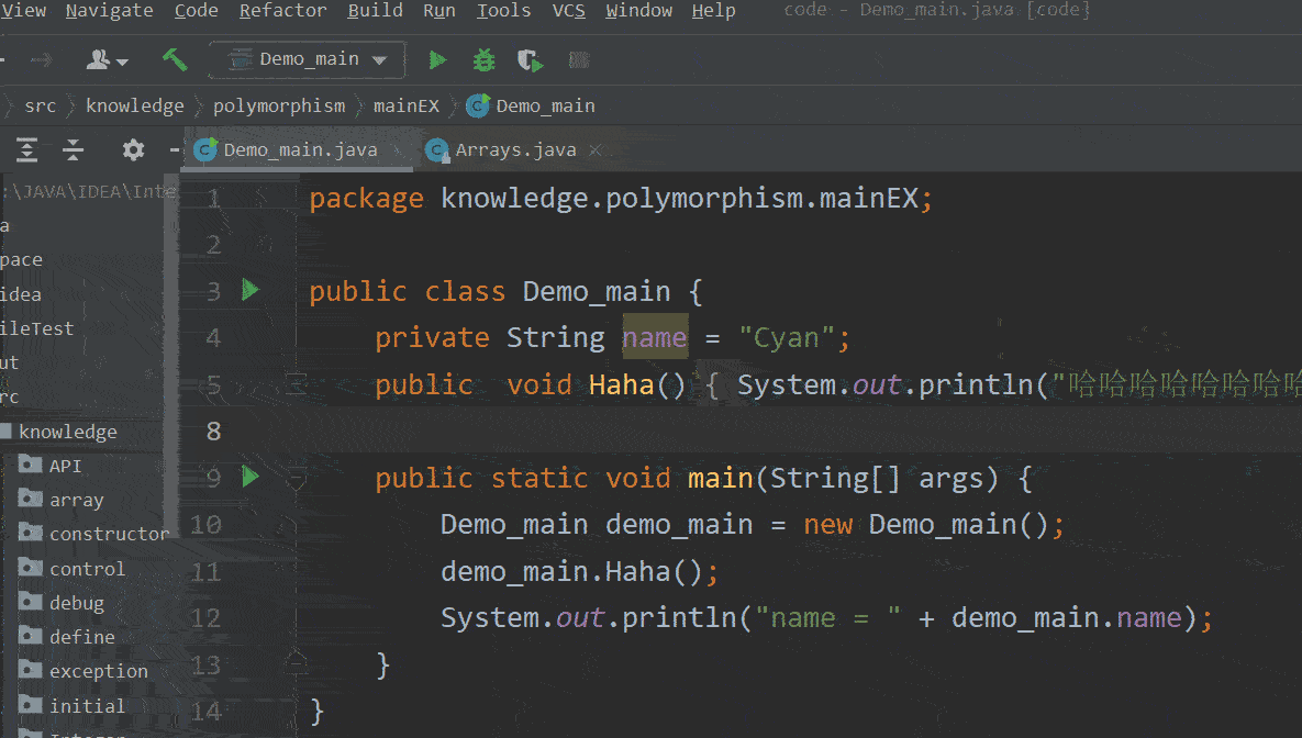 System.out.println("name = " + demo_main.name);