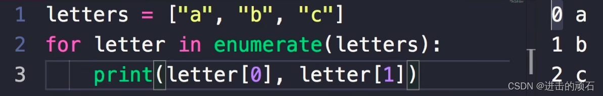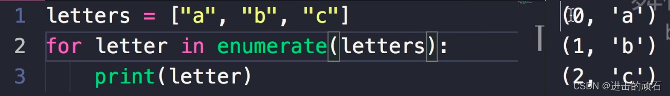 enumerate() 函数用于将一个可遍历的数据对象(如列表、元组或字符串)组合为一个索引序列,同时列出数据和数据下标,一般用在 for 循环当中。