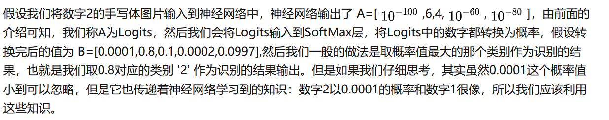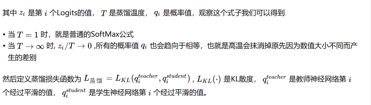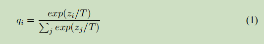 但是这些数字的大小相差太大,类似于归一化,先想办法在不改变它们原有分布的情况下,改变这些数值的大小,使其具有可比性,Hinton在这里引入了一个称为'温度'的参数,对Logtis进行平滑处理,知识蒸馏这个词语也是来自于这个过程,具体平滑公式是