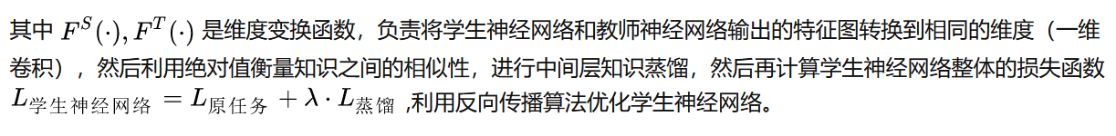 可以将神经网络看作是一个解决问题的过程,最后神经网络的输出结果就是神经网络对问题的解,而中间的网络层就是解决问题的步骤,既然可以让学生神经网络直接学习教师神经网络输出的问题结果,也可以利用蒸馏损失函数让学生神经网络学习教师神经网络的解题过程,也就是学习教师神经网络中间层的知识。