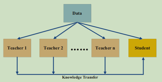 相当于是一种模型集成的方法,利用知识蒸馏将多个教师神经网络中的知识迁移到学生神经网络中,让学生神经网络在多个不同的特征空间中进行学习,可以大幅提高学生神经网络的准确率。