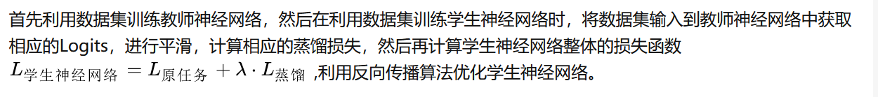 也就是在知识蒸馏中,教师神经网络是预先在数据集上进行过训练的,然后在学生神经网络的训练过程中利用自身学习到的知识对其进行指导,帮助提高学生神经网络的准确率。