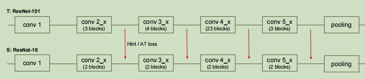 这篇论文中的中间层知识蒸馏过程如下图