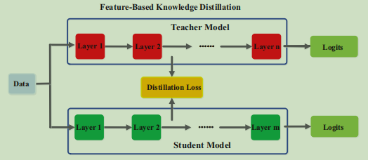 中间层知识:图中的Feature-Based Knowledge,指的是教师神经网络中间网络层的输出、包含的参数