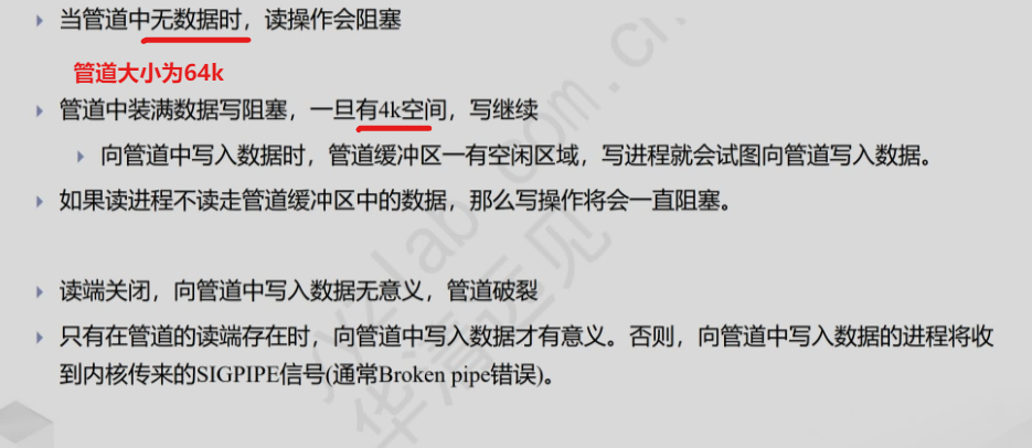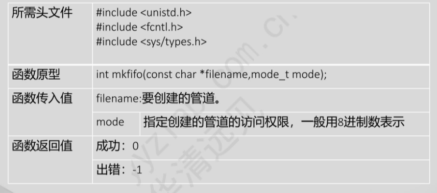 进程通过文件IO来操作有名管道、有名管道遵循先进先出规则、不支持如lseek()操作。
