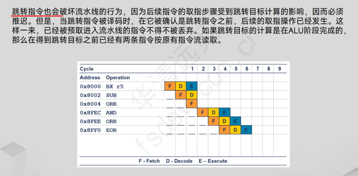 当遇到跳转指令时,流水线中的错误指令需要被清除,重新取指,这会导致流水线冲刷(Flush),降低执行效率。