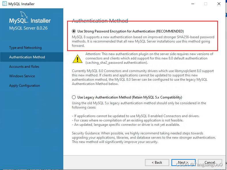 8、因为安装的MySQL已经是8.0以上的版本,默认选择第一项密码加密规则。