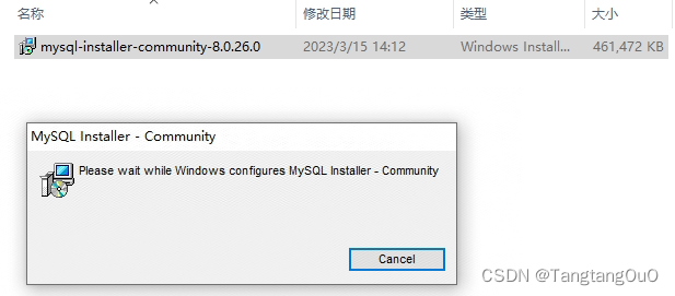 1、双击刚刚下好的mysql-installer-community-8.0.26.0.msi文件进行运行
