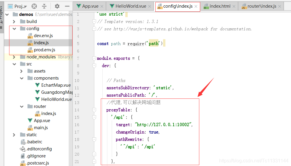 2,vue项目中配置代理规则,如下图