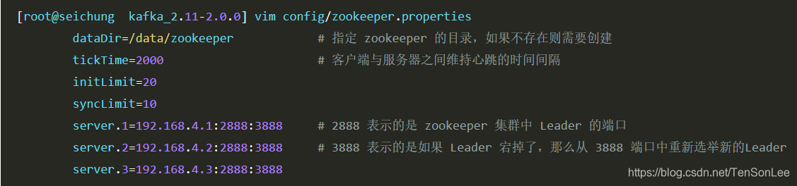在config目录下存放kafka的配置文件,kafka采用zookeeper来管理集群下的服务,所以我们打开config目录下的zookeeper.properties进行配置。