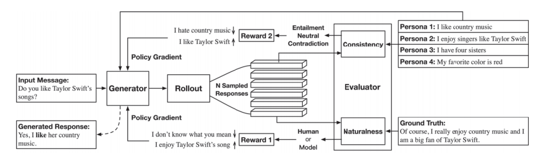 E 是回复与角色信息一致的置信度,C 是回复与角色信息矛盾的置信度。通过该奖励函数,希望鼓励模型尽可能生成一致的回复并减少不一致回复的生成。