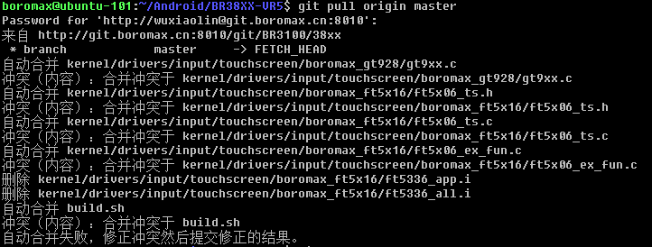 git库版本与本地库版本冲突:个人定义为就是git库版本与本地库版本不匹配,详细地说就是我们从git库clone克隆下来的版本,经过修改后提交并合并成新版本,但是后来又将git库的该版本撤销了,而本地没有撤销该版本,此时就是本地库拥有此版本而git库中没有此版本。这样在使用git pull或git pull origin master可能会出现:“Your local changes to the following files would be overwritten by merge”或"PULL 不可用,因为您尚有未合并的文件“或"自动合并失败,修正冲突后提交修正后的结果"