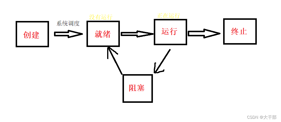 【JavaEE初阶】进程调度的过程 什么是进程调度?进程调度是指操作系统按某种策略或规则选择进程占用CPU进行运行的过程。无论是在批处理系统还是分时系统中,用户进程数一般都多于处理机数、这将导致它们互相争夺处理机。另外,系统进程也同样需要使用处理机。这就要求进程调度程序按一定的策略,动态地把处理机分配给处于就绪队列中的某一个进程,以使之执行。那么我们先来看看进程的一个状态----》当计算机系统处于就绪状态的用户进程数多于CPU数时,就会产生多个进程或线程同时竞争CPU的结果。假设现在只有一个CPU可用,那么操作系统就必须选择下
