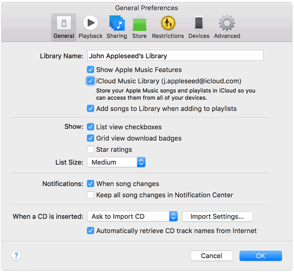 步骤 4. 转到“通用”部分,勾选“iCloud 音乐资料库”选项以将其打开。