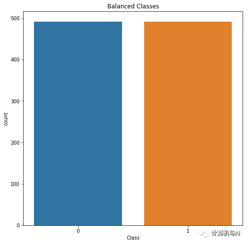 在对数据集进行欠采样之后,我再次对其进行了绘制,并显示了相等数量的类: