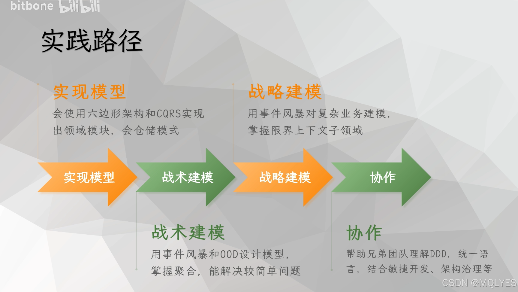 08.聚合的上下限 每个黄色点代表一个业务对象,箭头表示它们之间存在的关系,被绿线圈起来的表示这几个业务对象之间存在一致性。到底按哪种方式去将它们聚合是件困难的事情,如果按一致性去划分,很难衡量到底哪几个对象之间一致性更强。再回到DDD的核心方法论:领域驱动模型,模型驱动软件设计。从问题域的角度来看,聚合是紧密联系的一组功能;从软件设计的角度来看,聚合是一个内存单元,包含一组对象,要被。