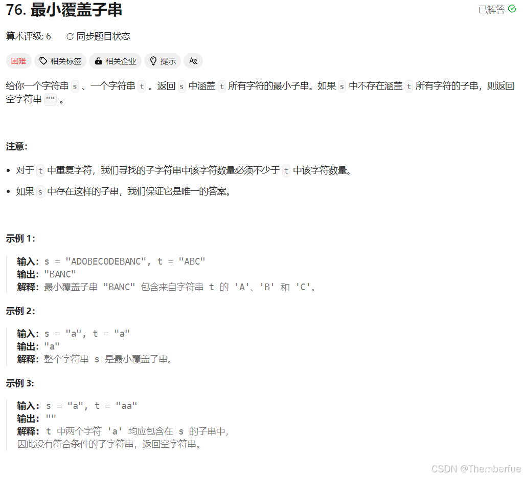 所选取的子串中一定得包含 t 中所有字符 ,且返回最小的那个子串