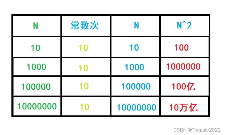 所以以上三段代码,时间复杂度我们大致可以写为 10,N,N^2