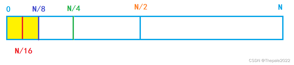 假设剩余的红色为最小元素单位,则 16 个元素我们总共查找了 4 次