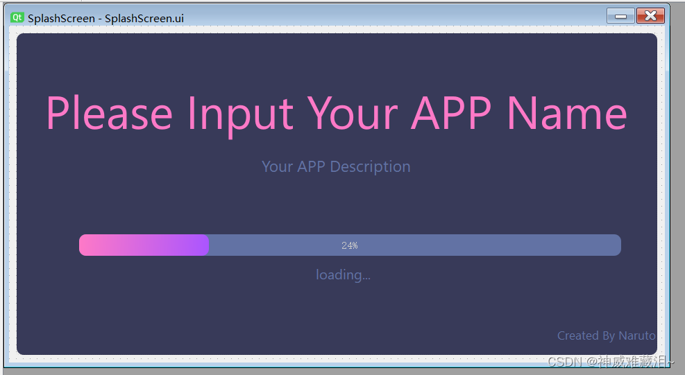 Qt实战-程序启动动画 很多的商用软件在启动之前都会有一段启动动画,当启动动画消失时,软件的主界面也就会呈现。程序的启动动画可以帮助我们了解到软件的一些相关信息,下面将介绍一个我自己设计的比较美观的程序启动动画。