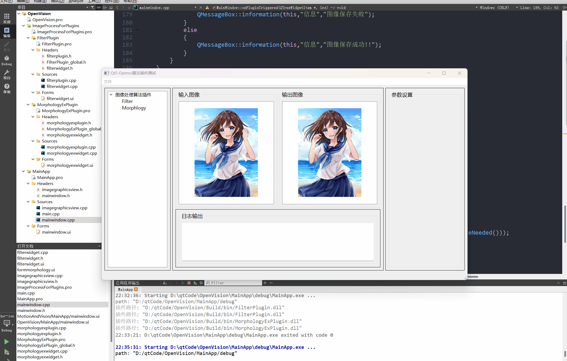 Qt5+Opencv插件式开发 插件(Plug-in,又称addin、add-in、addon或add-on,又译外挂)是一种遵循一定规范的应用程序接口编写出来的程序。其只能运行在程序规定的系统平台下(可能同时支持多个平台),而不能脱离指定的平台单独运行。因为插件需要调用原纯净系统提供的函数库或者数据。很多软件都有插件,插件有无数种。例如在IE中,安装相关的插件后,WEB浏览器能够直接调用插件程序,用于处理特定类型的文件。在开发机器视觉项目通常使用QtWidget作为GUI框架,使用Opencv或者Halcon作为视觉算法框架。
