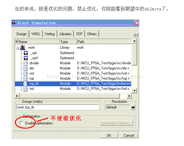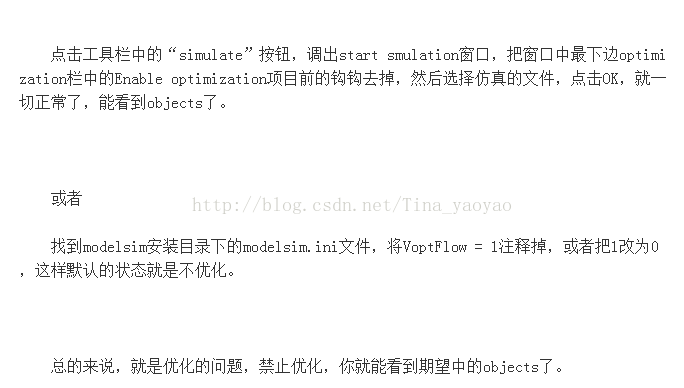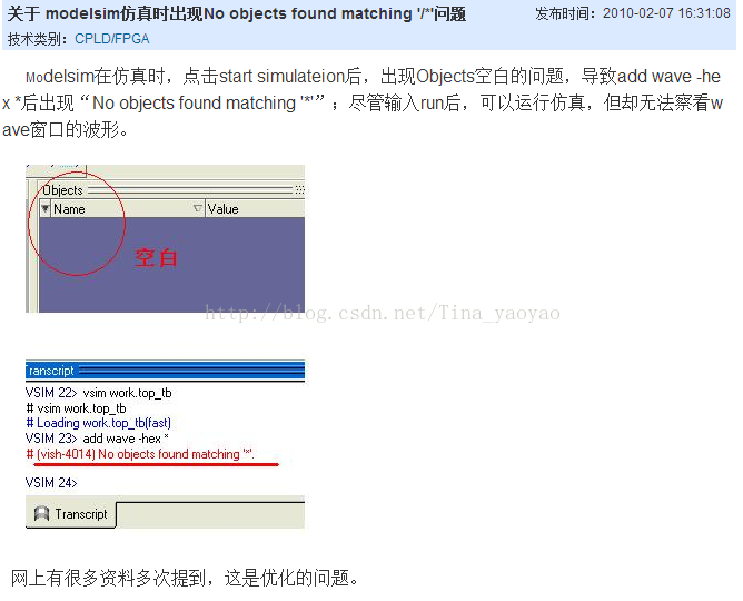 这段时间,仿真时出现很多次关于 modelsim仿真时出现No objects found matching '/*'问题,今天百度了下,在EDN 电子技术设计网上找到了大侠们的答案,截图如下: